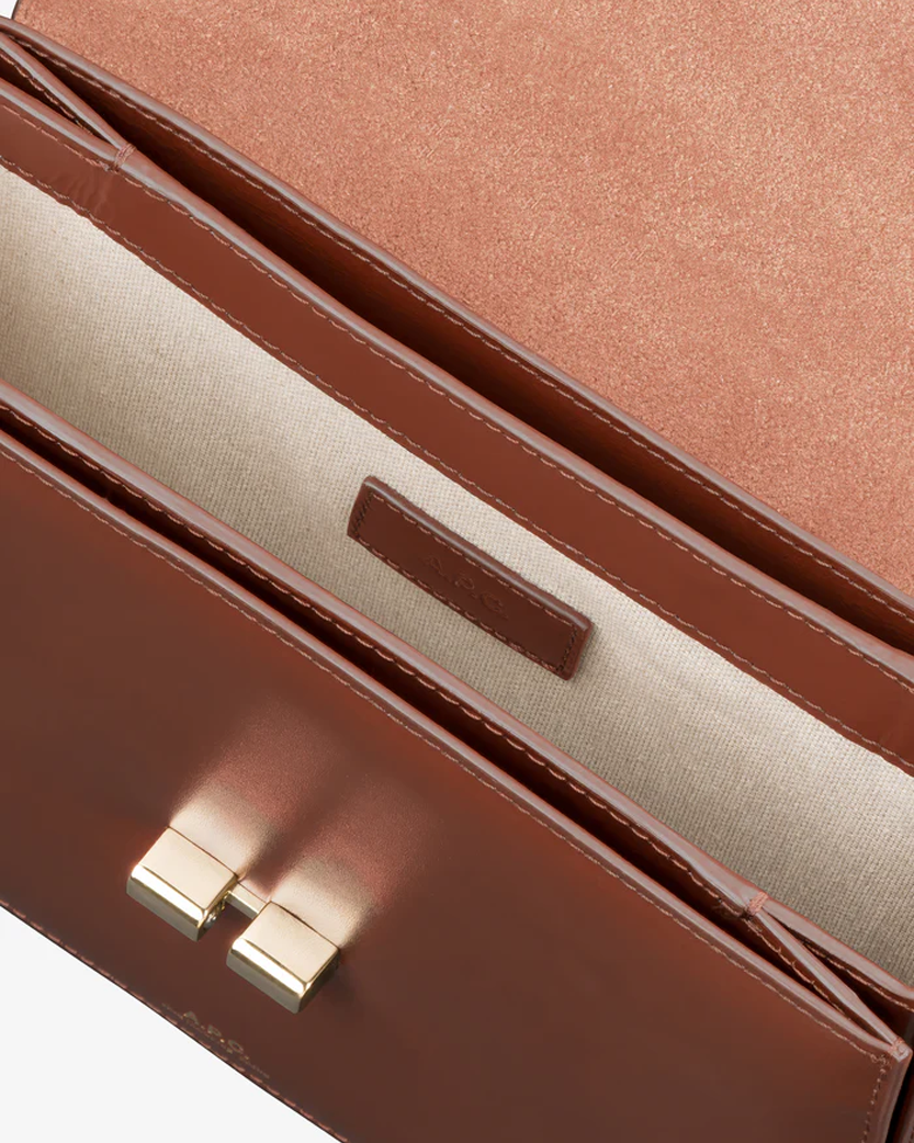 - Тиснений золотистий логотип «APC. Rue Madame Paris».