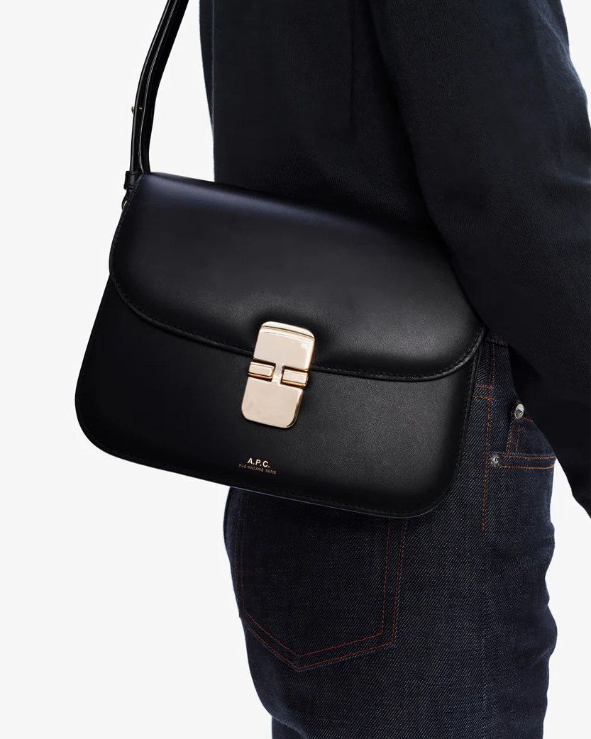 - Тиснений золотистий логотип «APC. Rue Madame Paris».