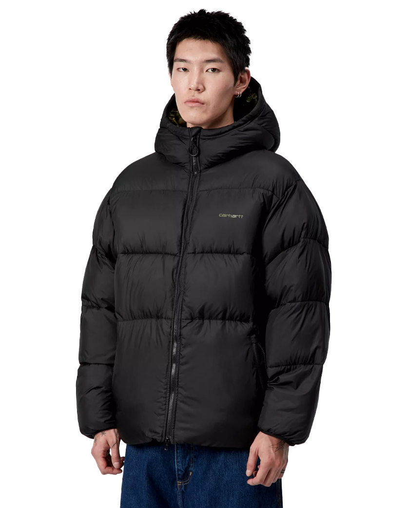 Куртка Toronto виготовлена з легкого водовідштовхувального поліестеру ріпстоп та підбита штучним пухом. Всередині на підкладці куртки є камуфляжний принт по всій довжині. Виріб також має регульований низ та капюшон, а також тканий ярлик Carhartt.