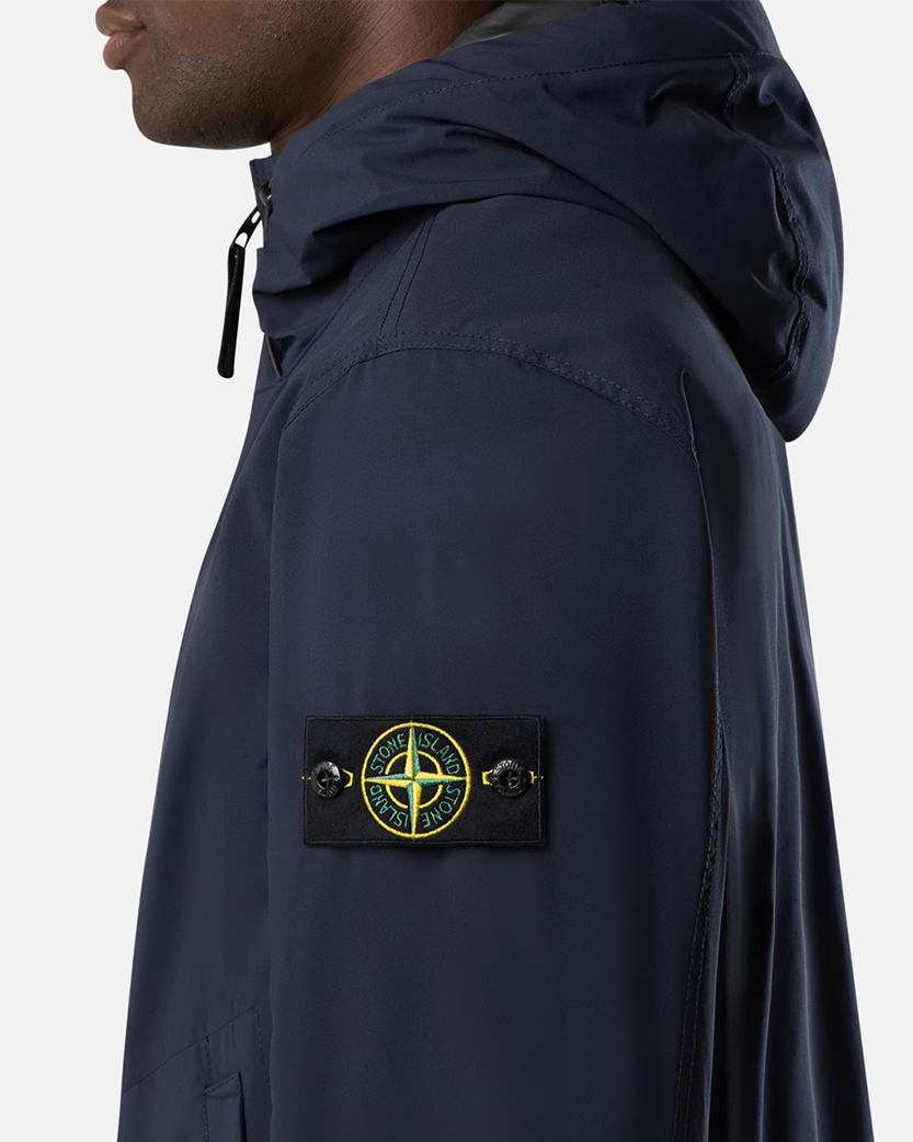 Куртка має крій regular fit, двосторонню застібку-блискавку, капюшон, що регулюється та патч Stone Island на лівому рукаві.