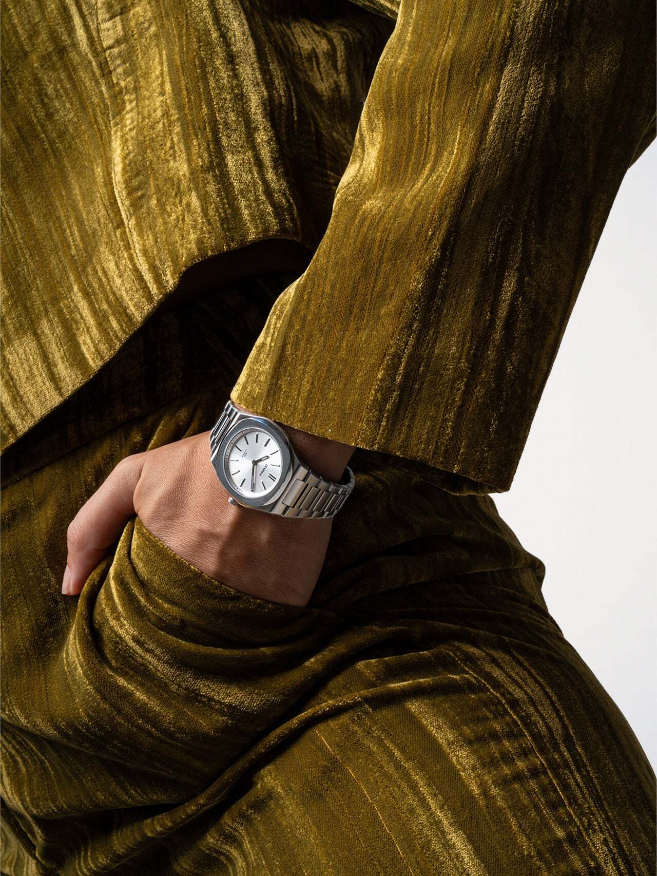 Ultra Thin 1970 переосмислює вінтажну естетику за допомогою сучасних деталей: закруглені корпус і безель, новий браслет із закругленими ланками та культова ультратонка форма з розміром корпусу 34 мм.