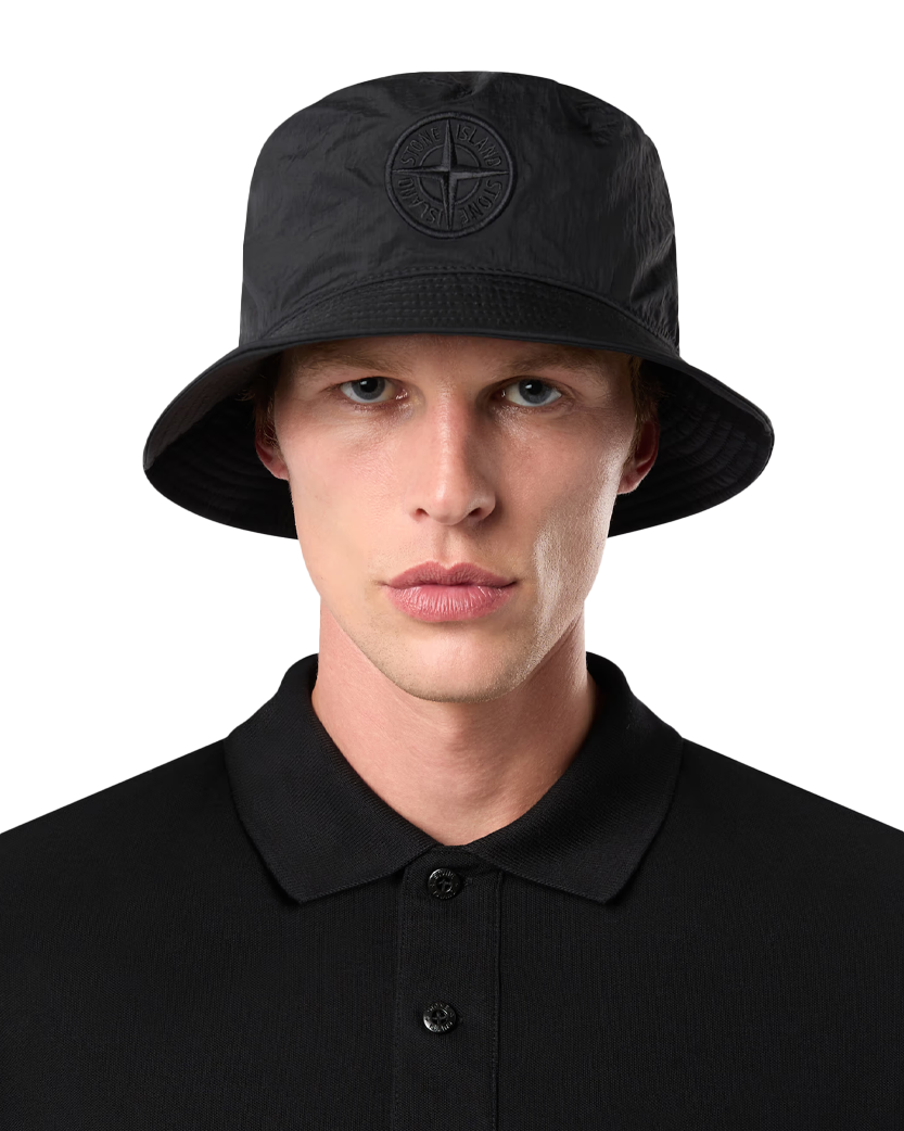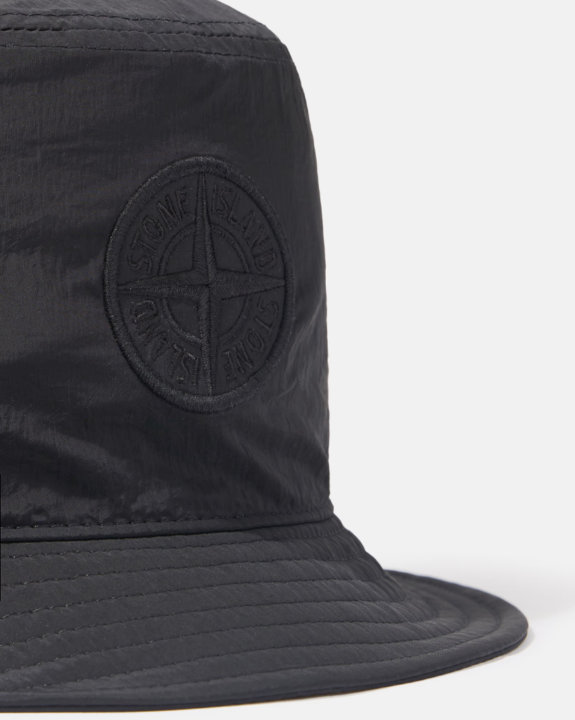 Панама виготовлена з тканини Stone Island Nylon Metal. Еволюція цієї культової тканини передбачає використання регенерованих ниток ECONYL®: нейлон, що відпрацьовується до та після споживання, переробляється за допомогою складного процесу деполімеризації, щоб створити це волокно, яке має ті ж притаманні характеристики, що й нейлон з викопної сировини.