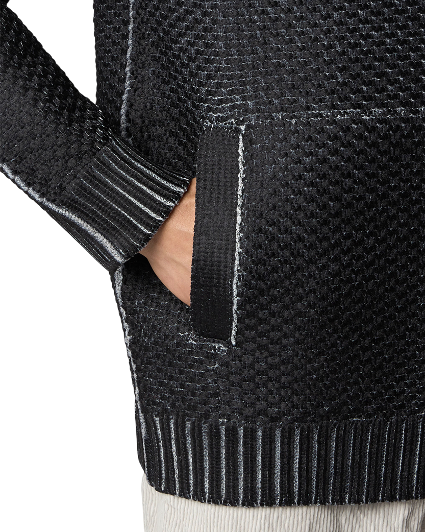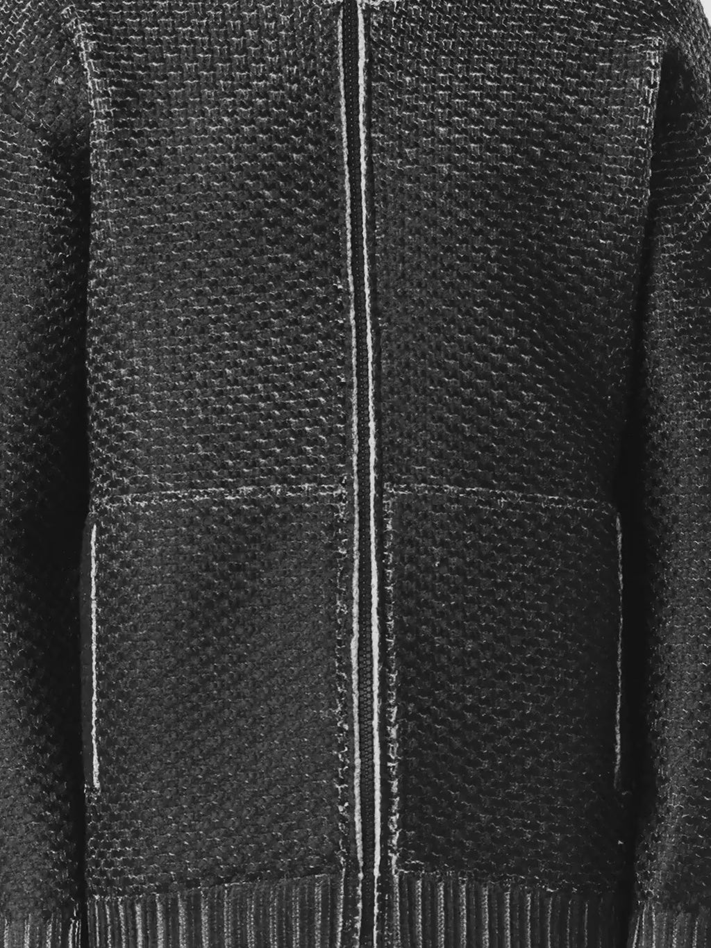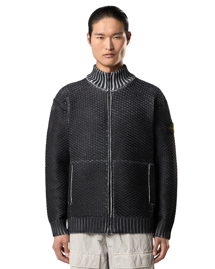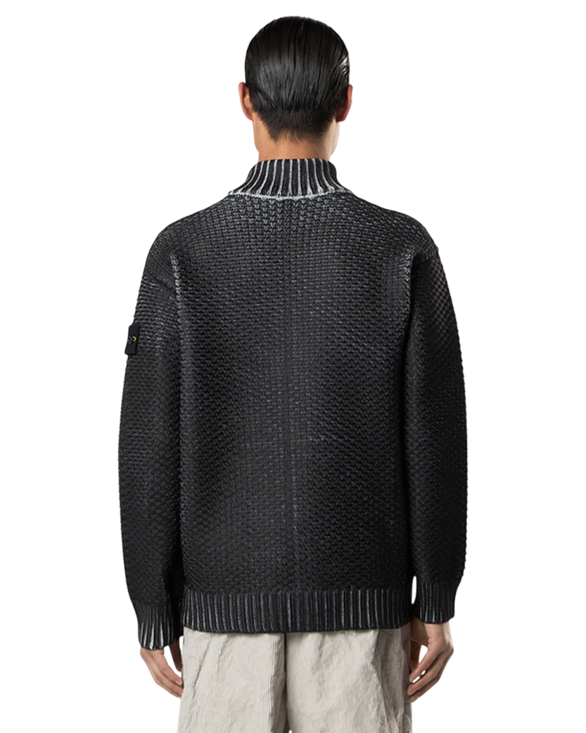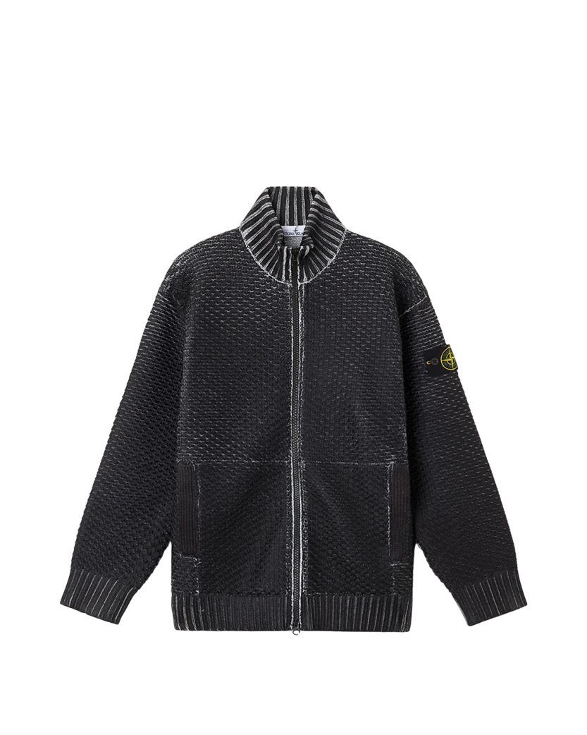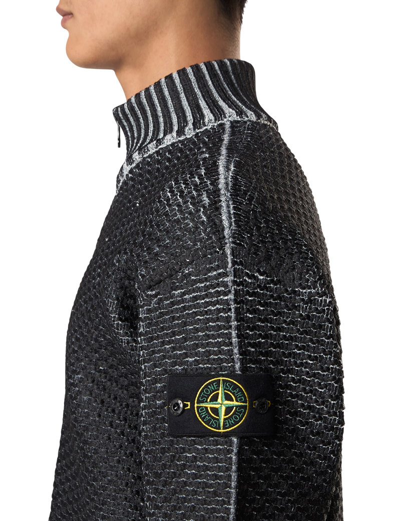 Светр виготовлений з еластичної суміші поліестеру та нейлону з сублімаційним принтом чорного кольору. Має вільний крій, застібку-блискавку, високий комір, кишені для рук та патч Stone Island на лівому рукаві.