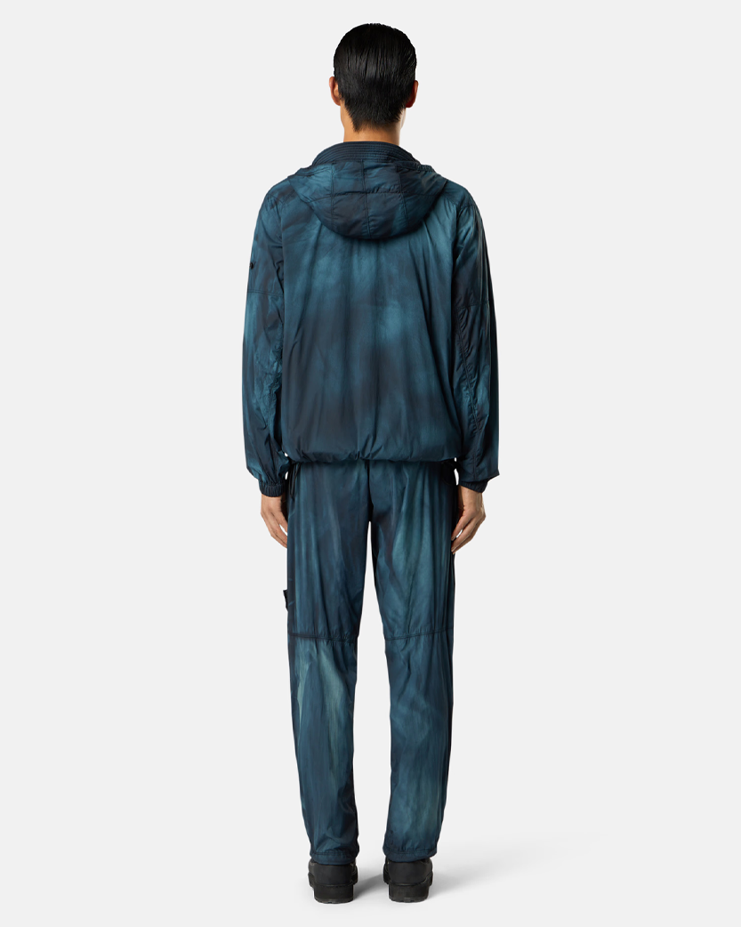 Спортивні штани виготовлені з високоякісної тканини з використанням надтонкої нейлонової мікрофібри з тонким вітро- та водостійким покриттям. Виріб пофарбований ретельно підібраними барвниками. Через нерівномірність обробки, ділянки набувають зношеного вигляду та різних кольорів, створюючи розмитий ефект та роблячи кожен виріб унікальним.