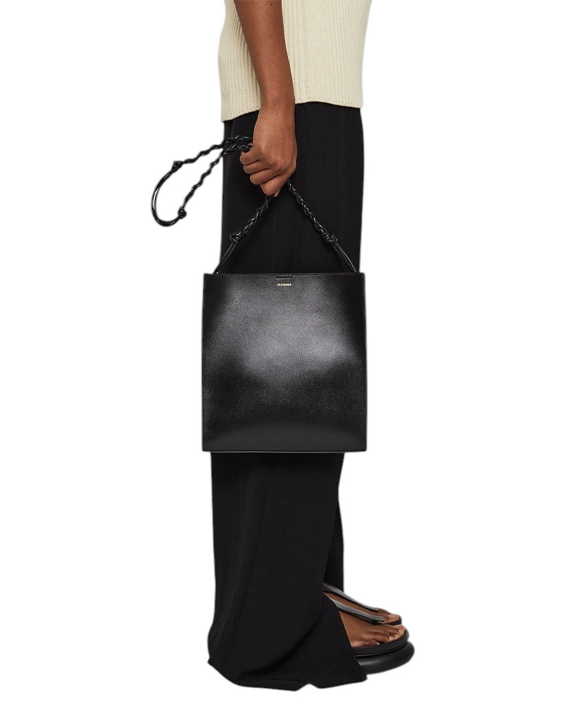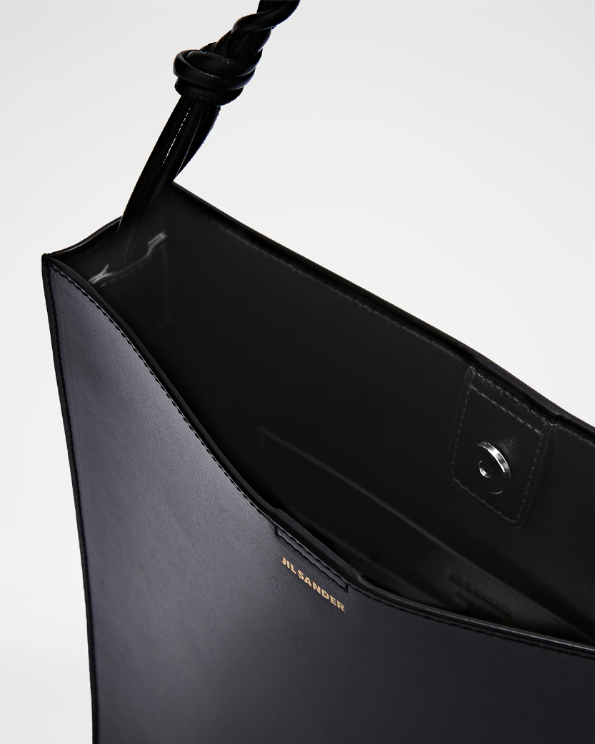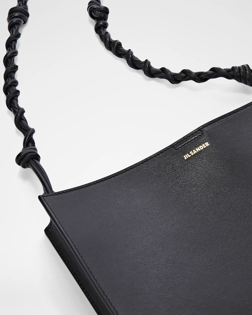 Шкіряна сумка Tangle Medium через плече середнього розміру з ремінцем ручного плетіння та тисненням логотипу Jil Sander