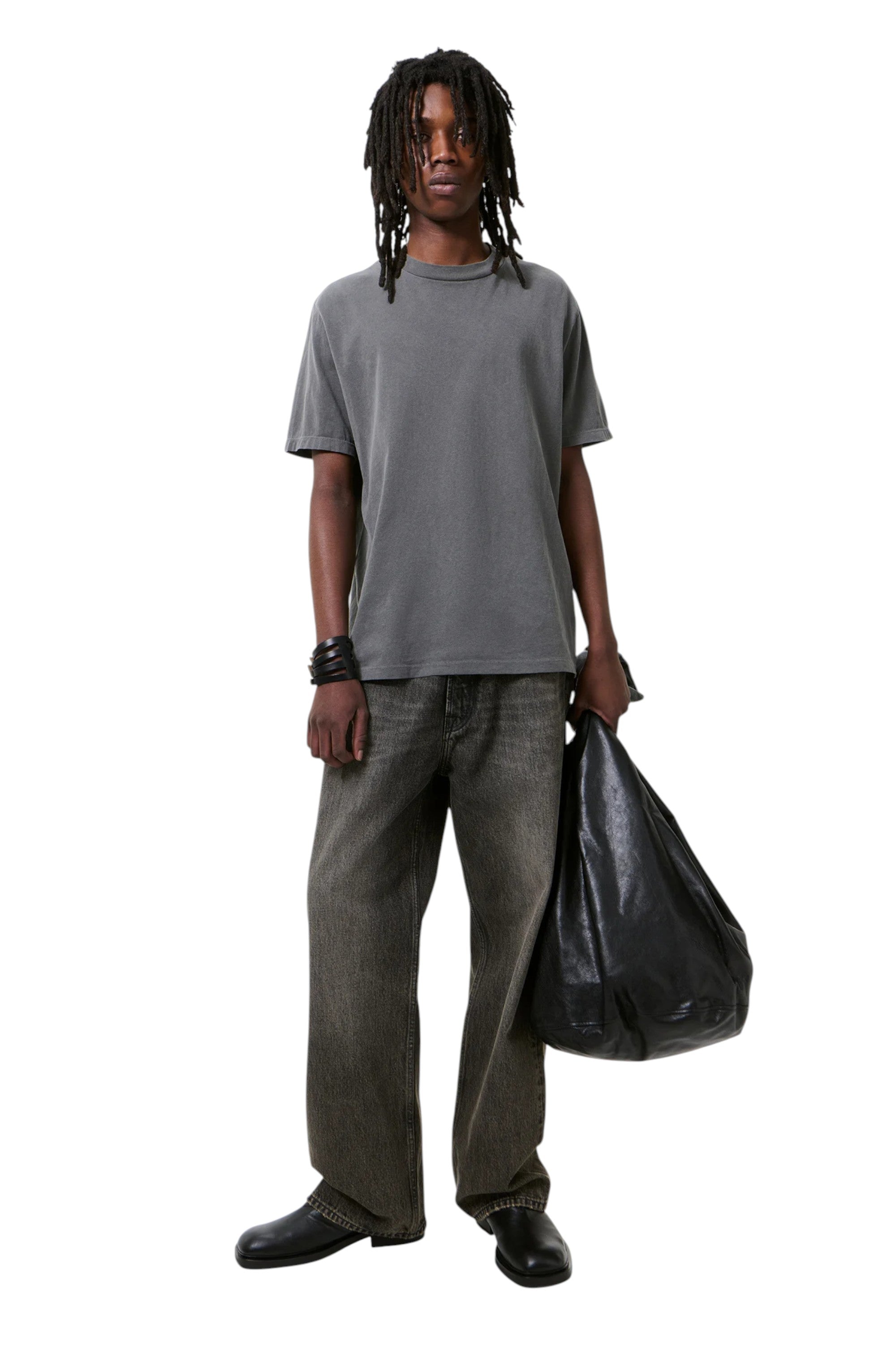 Футболка Box з потертого чорного джерсі Legacy. Виготовлена з вінтажного праного португальського бавовняного джерсі, чоловіча футболка Box має вільний, облягаючий крій, ребристий комір та прямий поділ.