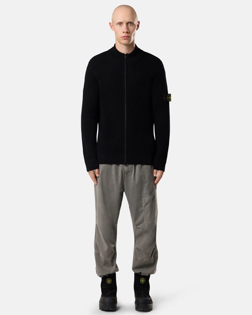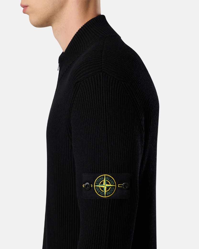 Stone Island 5100006 RIB RWS WOOL Zip Cardigan Black