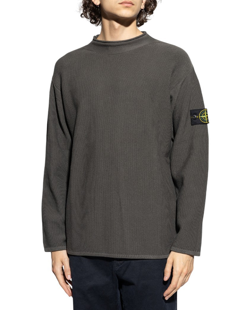 В'язаний светр Stone Island має класичний силует оверсайз з довгими рукавами та плавно спущеними плечима. Весь виріб виконаний у благородному, однотонному сірому відтінку, що підкреслює гладку, тривимірну текстуру в'язання.