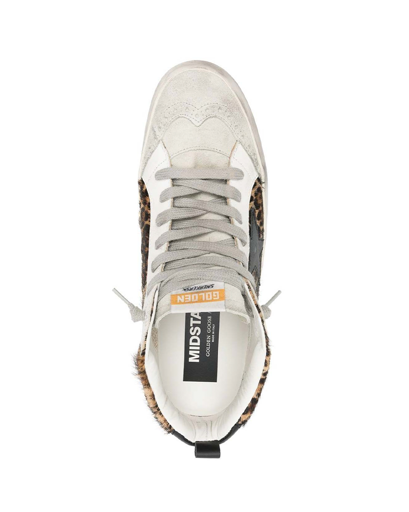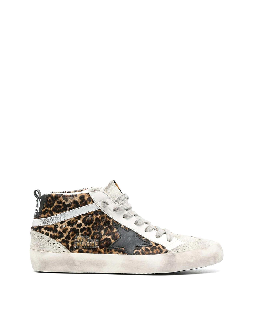 Кросівки з леопардовим принтом та ефектом потертості, виготовлені зі шкіри. Мають круглий носок, шнурівку спереду, фірмовий зіркоподібний патч та логотип на заднику.